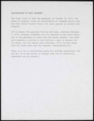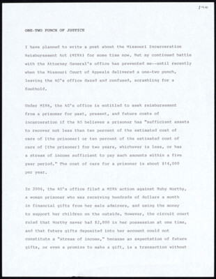 I have planned to write a post about the Missouri Incarceration Reimbursement Act (MIRA) for some time now. But my continued battle with the Attorney General's office has prevented me...