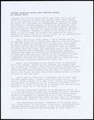 TURNING STUMBLING BLOCKS INTO STEPPING STONES by Zachary Smith Learning how to tie my shoes didn't come easy. If no one was around to help me, my shoes went untied, which often caused me to...