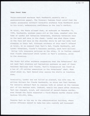 Home Sweet Home Twice—convicted murderer Mark woodworth recently won a postconviction appeal. The Missouri Supreme Court ruled that the county prosecutor withheld favorable evidence from Woodworth prior to his trial, undermining confidence in the jury's...