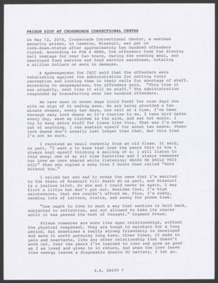 PRISON RIOT AT CROSSROADS CORRECTIONAL CENTER On May 12, 2018, Crossroads Correctional Center, a maximum security prison, in Cameron, Missouri, was put on lock—down—status after approximately two hundred offenders rioted. According to FOX 4 NEWS,...