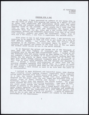 Al Cunningham E—226OO 2/18/05 FREEDOM FOR A DAY In the past, I have expressed my sadness at not being able to see any forms of plant life growing and nature as a whole, as well...