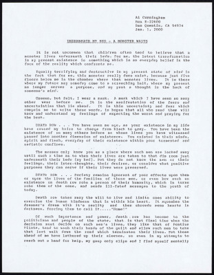 Al Cunningham Box E-22600 San Quentin, CA 94974 Jan. 1, 2000