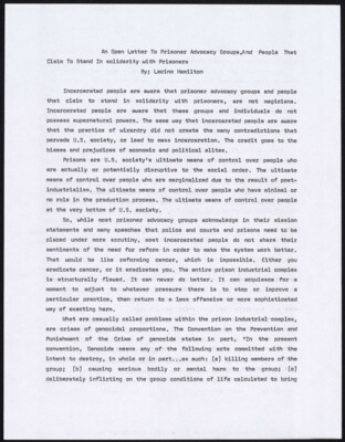 An Open Letter To Prisoner Advocacy Groups,And People That Claim To fitand In solidarity with Prisoners By: Lacino Hamilton Incarcerated people are aware that prisoner advocacy groups and people that claim to stand in solidarity...