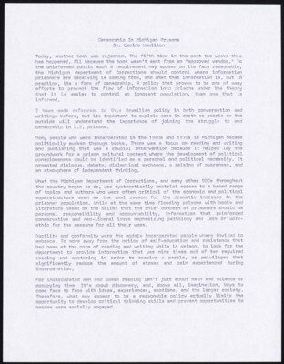 Censorship In Michigan Prisons By: Lacino Hamilton Today, another book was rejected. The fifth time in the past two weeks this has happened. All because the book wasn't sent from an "approved vendor." To the...