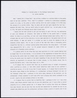 Preface To A Suicide Letter To The Michigan Parole Board By: Lacino Hamilton When I shared with a friend that I was writing a preface to a suicide letter to the parle board he had...