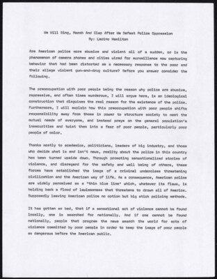 We Will Sing, March And Clap After We Defeat Police Oppression By: Lacino Hamilton
