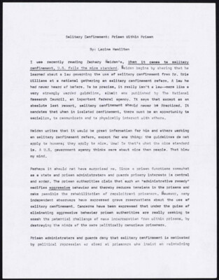 Solitary Confinement: Prison Within Prison By: Lacino Hamilton