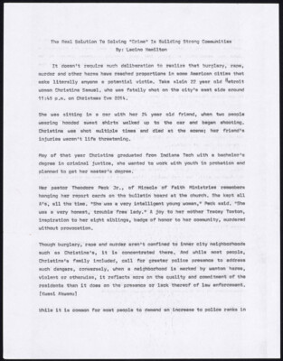 The Real Solution To Solving "Crime" is Building Strong Communities By: Lacino Hamilton