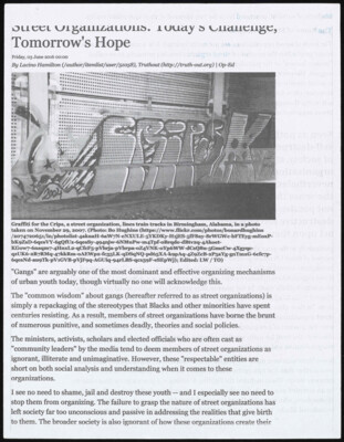 Street Organizations. Today's Challenge, Tomorrow's Hope Friday, 03 June 2016 By Lacino Hamilton