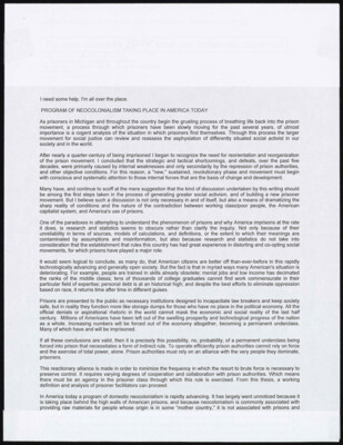 I need some help. I'm all over the place. PROGRAM OF NEOCOLONIALISM TAKING PLACE IN AMERICA TODAY As prisoners in Michigan and throughout the country begin the grueling process of breathing life back into the...