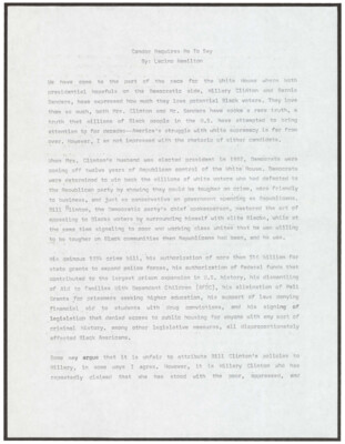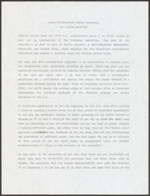 Lever Pulling/Push Button Democracy By: Lacino Hamilton Several months into the 2016 presidential race, I am still trying to my impressions of the dominate narrative, "the year of the outsider," or what to make of...