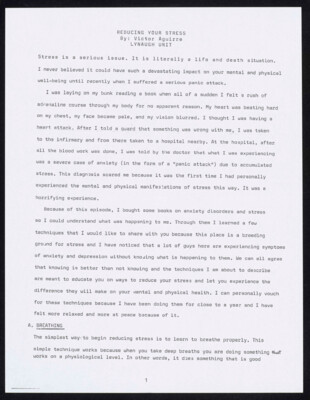 Reducing Your Stress By: Victor Aguirre Lynaugh Unit Stress is a serious issue. It is literally a life and death situation. I never believed it could have such a devastating impact on your mental and...