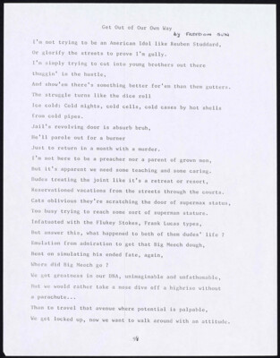 Get Out of Our Own Way By Freedom Sun I'm not trying to be an American Idol like Reuben Studdard, Or glorify the streets to prove I'm gully. I'm simply trying to cut into young...