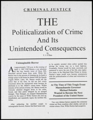 The Politicalization of Crime And Its Unintended Consequences By P.J. O'Shea
