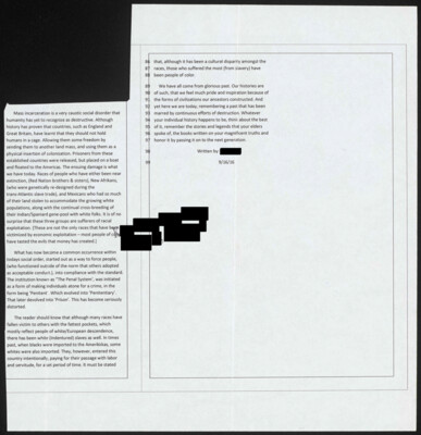 The APWA is an open access archive. We encourage use of the writings for research, course planning, and projects engaged in examination of the criminal legal system. Reproduction of essays in their entirety infringes on author copyright without their explicit consent from the writers. Please contact us if you plan to reproduce entire essays; we will do our best to put you in contact with the authors for consent, and their compensation for any project that is profit making.