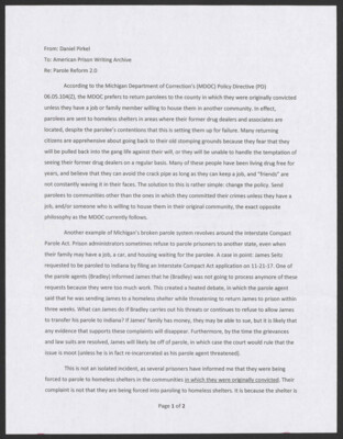 From: Daniel Pirkel To: American Prison Writing Archive Re: Parole Reform 2.0