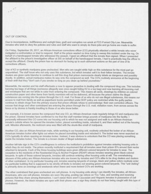 OUT OF CONTROL Due to incompetence, indifference and outright bias; graft and corruption run amok at FCC-Forrest City-Low. Meanwhile inmates who wish to obey the policies and rules and staff who want to simply do...