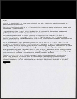 The APWA is an open access archive. We encourage use of the writings for research, course planning, and projects engaged in examination of the criminal legal system. Reproduction of essays in their entirety infringes on author copyright without their explicit consent from the writers. Please contact us if you plan to reproduce entire essays; we will do our best to put you in contact with the authors for consent, and their compensation for any project that is profit making.