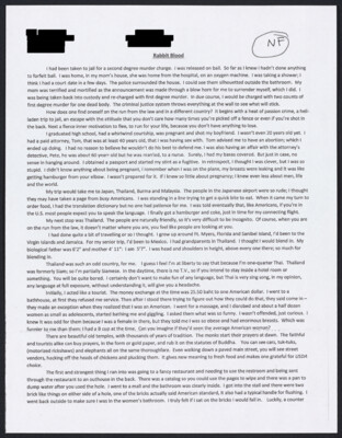 Rabbit Blood I had been taken to jail for a second degree murder charge. I was released on bail. So far as I knew I hadn't done anything to forfeit bail. I was home, in...