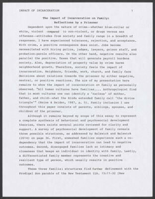 IMPACT OF INCARCERATION 1 The Impact of Incarceration on Family: Reflections by a Prisoner Dependent upon the nature of crime—+whether blue—collar or white, Violent zcdmxued to non—violent, or drugs versus sex offenses-—attitudes from society and...