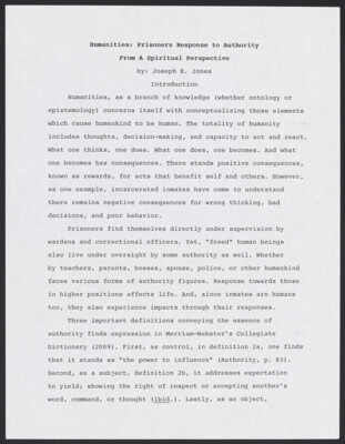 Humanities: Prisoners Response to Authority From A Spiritual Perspective by: Joseph E. Jones