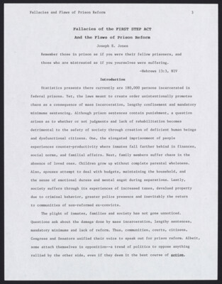 Fallacies and Flaws of Prison Reform 3 Fallacies of the FIRST STEP ACT And the Flaws of Prison Reform Joseph E. Jones Remember those in prison as if you were their fellow prisoners, and those...