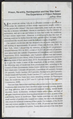 Prison, Re-entry, Reintegration and the 'Star Gate': The Experience of Prison Release Jeffrey Bliss Many people are asking 'why do ex-offenders continue to re-offend or violate the conditions of their release supervisions usually within a...