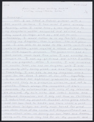 risk 9-29-2018 American Prison Writing Archive "civilian rehabilitation letter" 1/2 Greetings! Well, I am indeed a federal prisoner with a 262 month sentence. I have served 5 years already. Recently, when I called home, a...