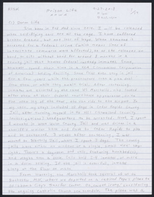 Risk Prison Life APWA 9-27-2018 1pm 9-28, 10pm (1) Dorm Life I've been in Fed Med since 2014. I will be released when self-flying cars are all the rage. I have suffered broken dreams, but...