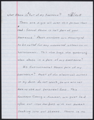 What abuse is part of my sentence? 9/10/2018 There are signs all over this prison that read: sexual abuse is not part of your sentence. Phone numbers are encouraged to be called for any unwanted...