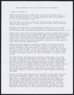 MASS INCARCERATION — WHAT IS IT COSTING US AND OUR CHILDREN? I. WHAT IS IT COSTING US: Former Attorney General Eric Holder stated in 2013 that the problem with the federal sentencing system is the...