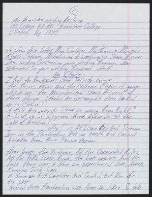 The American Writing Archive 198 College Hill RD Hamilton College Clinton, NY 13323 To Whom this Letter May Concern: My name is Minister Khalil Shabazz Muhammad A Washington State prisoner. I am writing concerning your...