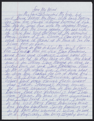 Free My Mind You may have incarcerated my body, but you’ll never arrest my mind. With each passing day I am free though different recessed of time. I am able to spend time with my...