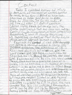 Contact Today I considered harmony and infinity in death, birth and the concept of contact. Contact for reasons to this essay is defined as expirience. Expirience is rather hard for me to even begin to...