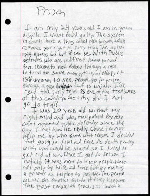 Prison I am only 24 years old. I am in prison dispite I wasnt found guilty. The system in courts have a thing called plea bargain, which removes your right to jury trial. The option...