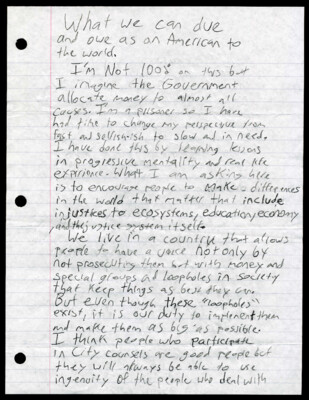 What we can due and owe as an American to the world. I'm not 100% on this but I imagine the Government allocate money to almost all causes. I'm a prisoner so I have had...