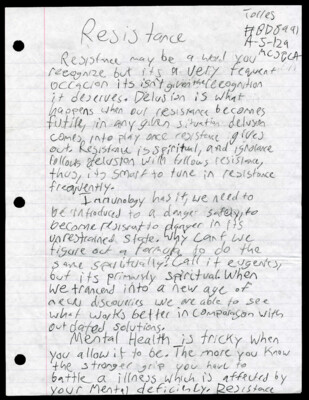 Torres Resistance Resistance may be a word you recognize but it's a very fequent occasion its isn't given the recognition it deserves. Delusion is what happens when our resistance becomes futile, in any given situation...