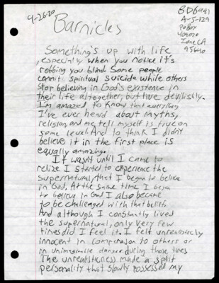 4-26-20 PO Box 409020 Ione CA 95640 Barnicles Something's up with life, especially when you notice it's robbing you blind. Some people commit spiritual suicide while others stop believing in God's existence in their life...