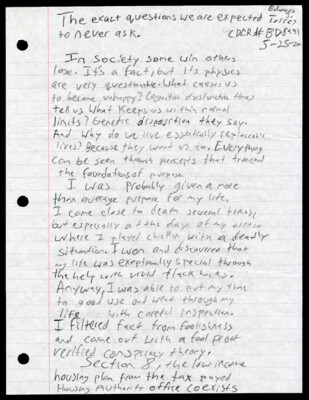 The exact questions we are expected to never ask. Eduardo Torres CDCR 5-25-20 In society some win others lose. It’s a fact, but its physics are very questionable. What causes us to become unhappy? Cognitive...
