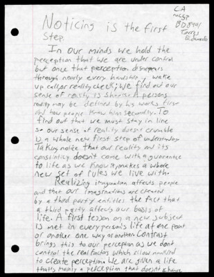 Noticing is the first step. CA MCSP Torres Eduardo In our minds we hold the perception that we are under control but once that perception disappears through nearly every hardship, wake up call, or reality...