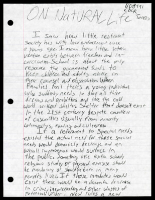 On Natural Life CDCR Torres I saw how little restraint society has with law enforcement since a young age. I mean how little intervention exists between freedom and incarceration. School is about the only resource...