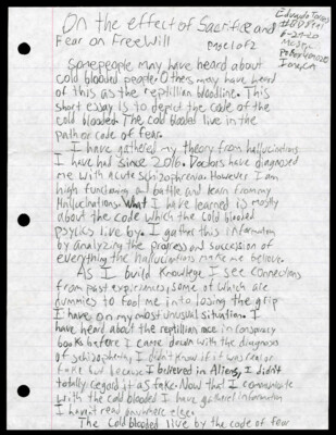 Eduardo Torres 6-29-20 MCSP PO Box 409020 Ione, CA On the Effect of Sacrifice and Fear on Free Will page 1 of 2 Some people may have heard about cold blooded people. Others may have...