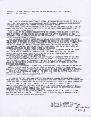 Heading: The Law Instruct that Concealment Establishes the Violation Title: "Cut the B.S.!" The District Attorney and Attorney General of Sacramento expressed to the public that “we” are going to do a independent investigation to...