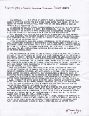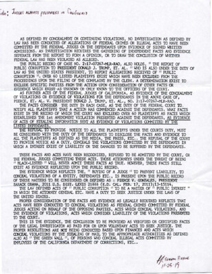 Title: Judges Against Prisoners in California As defined by concealment or continuing violations, no investigations as defined by law has been conducted of allegations of federal crimes or illegal acts to have been committed by...
