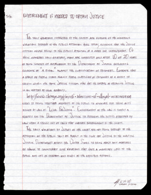Title Enforcement is needed to obtain justice The daily violations corrected by the courts are evidence of the numerous violations brought to the publics attention here today, evidence that the Justice system never brings to...