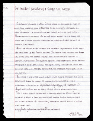 Title The Harshest Punishment a Human Can Suffer Enforcement is needed to obtain justice where you have over ten years of evidence of innocence being disregarded by the same people that review all legal judgments...
