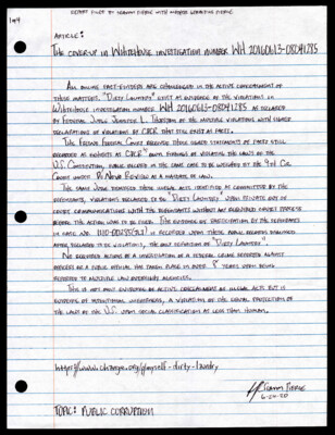 1 of 4 Report filed by Seavon Pierce with mother Geraldine Pierce Article: The Cover-Up in Whitehouse Investigation Number All online fact-finders are challenged in the active concealment of these matters. "Dirty Laundry" exist as...