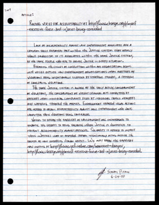 2 of 4 Article: Raising Voices for Accountability at https://www.change.org/p/myself-excessive-force-and-injuries-being-concealed Lack of accountability against law enforcement associates are a common daily repeated fact within the justice system that openly shows favoritism to its associates within...