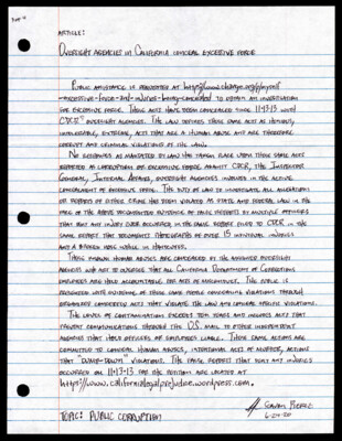 3 of 4 Article: Oversight agencies in California conceal excessive force Public assistance is requested at http://www.change.org/p/myself-excessive-force-and-injurues-being-concealed to obtain an investigation for excessive force. These acts have been concealed since 11-13-13 with CDCR oversight agencies....