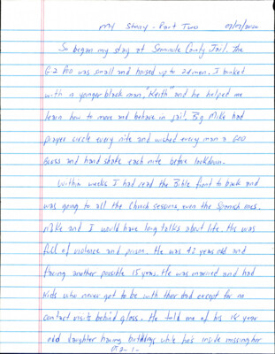 My Story - Part Two 07/07/2020 So began my stay at Seminole County Jail. The G-2 Pod was small and housed up to 24 men. I bunked with a younger black man, "Keith" and he...